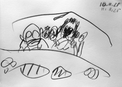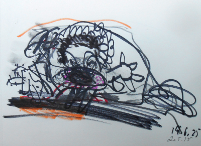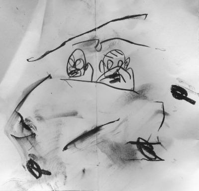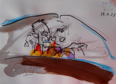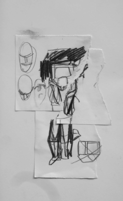 Auch an einem Montagabend im Kurs als Erklär-Skizze entstanden und dann zerrissen und jetzt wieder zusammengefügt.