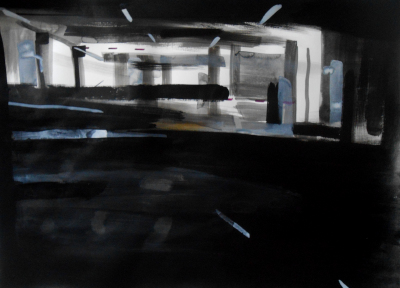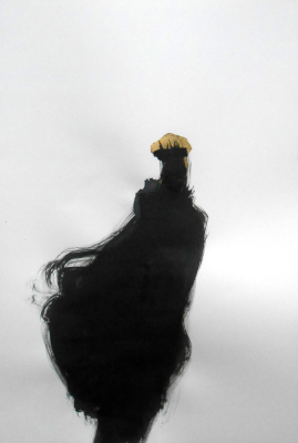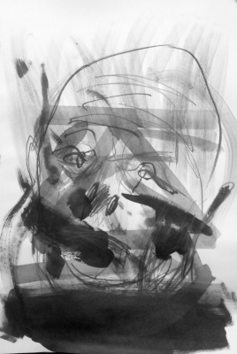 Manchmal, und gar nicht mal so selten, passiert es mir, dass ich zu einem bestimmten Anlass, einem bestimmten Projekt und Auftrag eine Technik benutze, benutzen muss, die ich ansonsten gar nicht so sehr anwende. Hier ist das auch wieder der Fall. Es ist noch gar nicht klar, ob diese Zeichnungen für dieses geplante Buchprojekt verwendet werden, ob es dem Verleger so gefällt, wie wir uns das denken. Es hat sich aber ergeben, dass die Arbeit mit Tinte (die man mir überraschenderweise zu Weihnachten geschenkt hat) besser passt als Tusche oder Graphit oder was auch sonst immer wieder in Frage hätte kommen können. Die Verwischungen der noch nassen (und nicht gänzlich schwarzen) Tinte erzielt Effekte, die ich ansonsten eher ablehnen würde, die mir hier, sowohl formal als auch inhaltlich zu passen scheinen. Und das ist, auch in diesen glücklosen Zeiten, dann doch ein Glück.