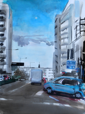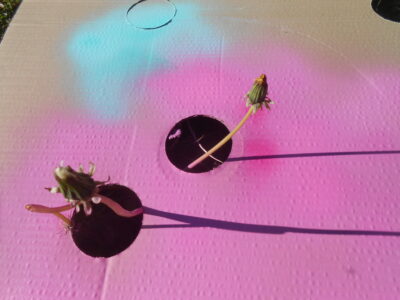 Seit einiger Zeit unterhalte ich auch ein Konto auf dem etwas sozialeren sozialen Netzwerk mastodon. Letztens habe ich dort obiges Foto gepostet. Direkt aus der Arbeit an einem großen Aquarell im Garten. Im Hintergrund die Tulpen, die dort im Hintergrund so wachsen.
