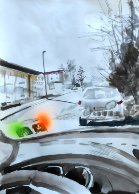 Ich nehme meine Bilder und Kritzeleien ernst. Das heißt: die gewählte Form ist die gewählte Form. Wenn ich einen Text hätte schreiben wollen, um ein Thema auf eine bestimmte Weise greifbar zu machen, dann hätte ich einen Text geschrieben. Und ein Bild oder eine Zeichnung arbeitet bis ins Detail mit der über die Jahre erlernten Sensibilität im Umgang mit der Setzung bestimmter graphischer und farblicher Elemente, die am Ende das ergeben und formulieren, was sie ergeben und formulieren. Jeder noch so kleine Farbspritzer und jede noch so kleine Regung der Hand gehört zur Sprache.