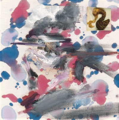 Bild Nr. 1409, 29.3.15, Öl, Collage, farbige Tusche, Lack, Lwd., 25x25cm
