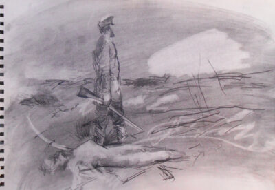 Heute morgen beim Treppab-Steigen fällt mir dann ein Portrait auf aus den Zeichnungen und Malereien zu Daniel Osorios „Herz im Gegenlicht“. Und da dachte ich: das isses. Diese genial vertonte, genial aufgeführte und verfilmte und genial geschnittene Geschichte aus der chilenisch-kolonialen Vergangenheit mit Gewalt, Habgier und Völkermord passt in unsere Zeit wie keine zweite – so wollte ich schreiben – aber: sie passt in unsere Zeit wie leider auch viele andere.