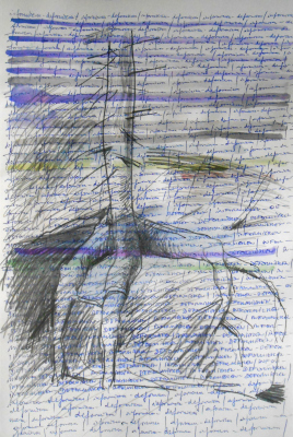 einen Tag später findet diese Skizze dann auf einem mit anderen Spuren vorbereiteten Blatt eine Verwendung. Informieren – deformieren.