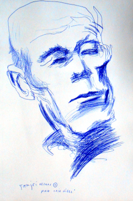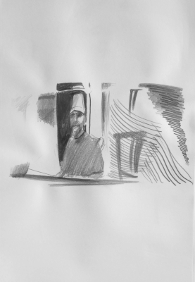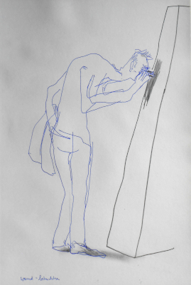 zeichnungen von unterwegs: der wandbetrachter (Berzona, 7.6.25, nachmittags kurz nach 15 Uhr)