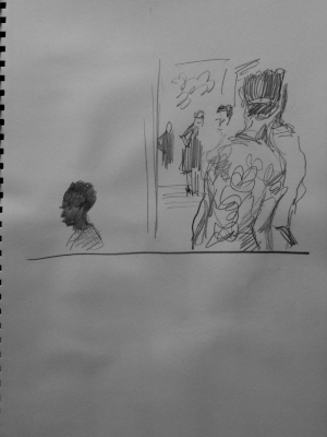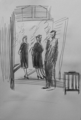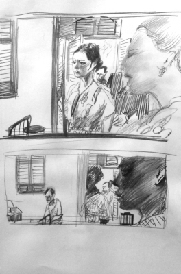 gleichzeitig ist diese sequenz ein kleiner blick in die handwerksgasse. es gibt noch zwei versuche im filmskizzenbuch, die auch auf der suche nach diesem speziellen ausdruck waren.